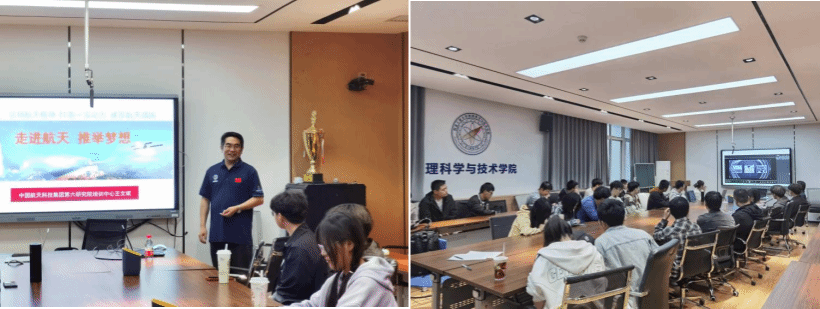 开展“弘扬工匠精神、奋斗成就梦想”主题活动。本次活动特别邀请了中国航天科技集团第六研究院宣讲师王文斌进行授课。王文斌以《走进航天、推举梦想》为题,结合中国航天事业的发展、航天液体动力的发展、航天精神的共性特征和时代内涵等内容,为大家做了一场精彩生动的专题报告。在报告中,通过丰富多彩的实例,他先后讲解了中国航天的发展历程,诠释了“载人航天精神、探月精神、新时代北斗精神”等谱系精神的深刻内涵,将深奥神秘的航天科学知识讲得生动具体,为师生们上了一堂别样的航天科普课。他鼓励大家,作为新时代青年,要积极学习老一辈航天人的拼搏精神,要立大志、明大德、成大才、担大任,脚踏实地、练好本领,把坚定的理想信念、高昂的爱国热情、强烈的责任担当、良好的精神风貌写入了浩瀚星空,赓续传承老一辈航天精神,为祖国航天科技事业发展献出青年力量。