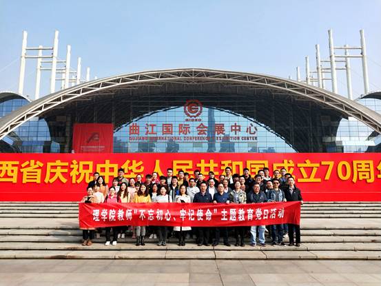 组织教职工党员和学生党员代表赴西安曲江国际会展中心参观了“陕西省庆祝中华人民共和国成立70周年成就展” 并开展“不忘初心、牢记使命”主题教育。成就展以“辉煌壮丽七十年 追赶超越再出发”为主题,共设家国情怀、追赶超越、不忘初心三大板块,着重讲述了三秦大地70年来的发展成就。