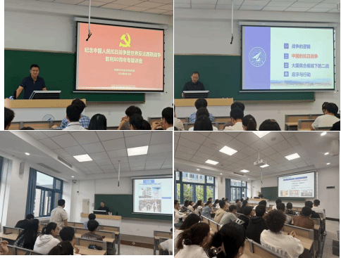 党委副书记樊文迪、组织员杨文琪、部分党员、2025级部分新生参加了本次讲座。讲座中,刘向阳教授从战争的逻辑、中国的抗日战争、大国竞合视域下的二战及启示与行动等四方面层层展开,史料结合,娓娓道来,宏观梳理了中国抗战的世界坐标,提炼了“落后就要挨打,自强方能复兴”的历史镜鉴。刘教授以宏阔的国际视角、翔实的史料案例,深刻阐释中国抗战的世界意义与当代启示。现场掌声迭起,师生们一致表示,将立足专业所学,在新时代新征程中勇担强国建设、民族复兴的青春使命。