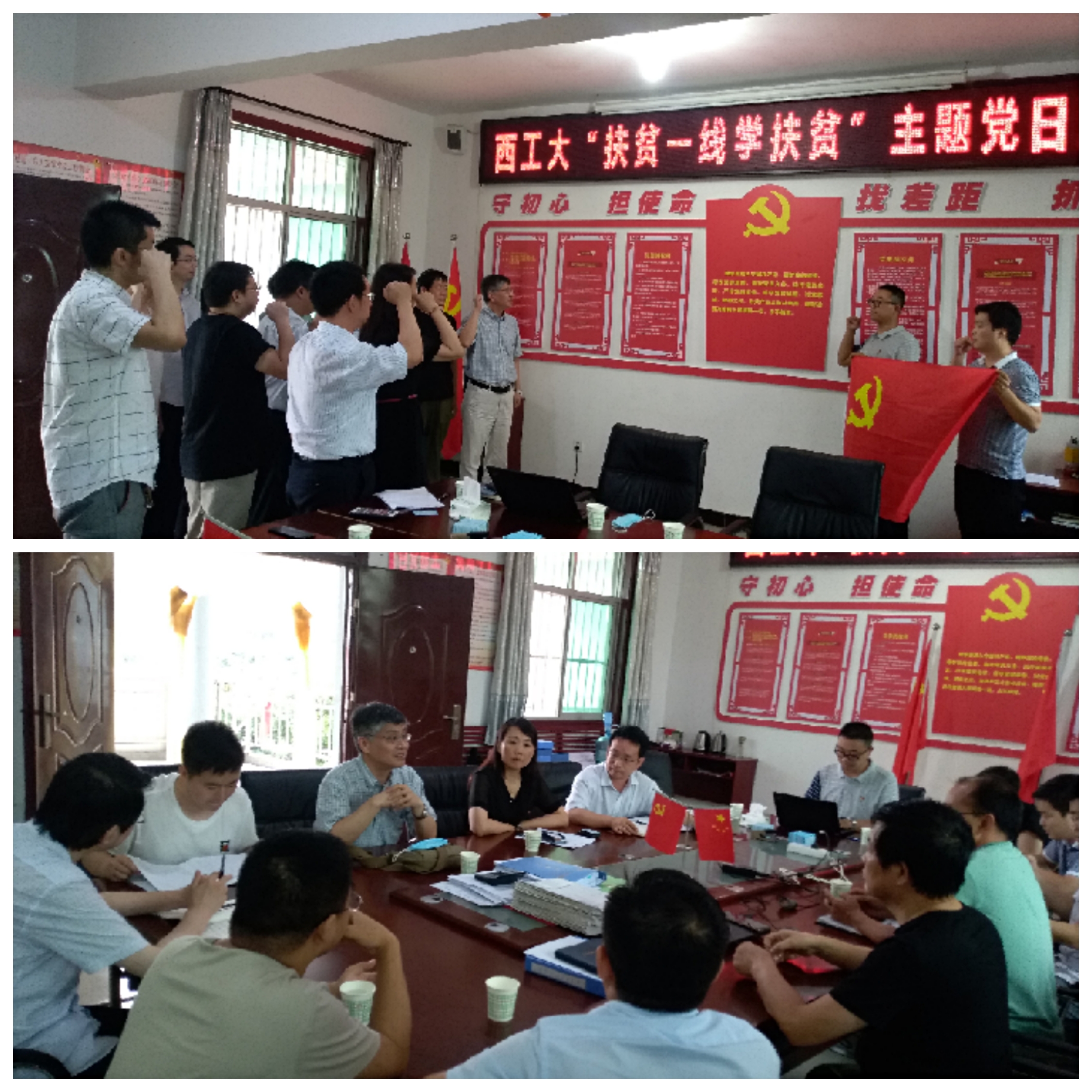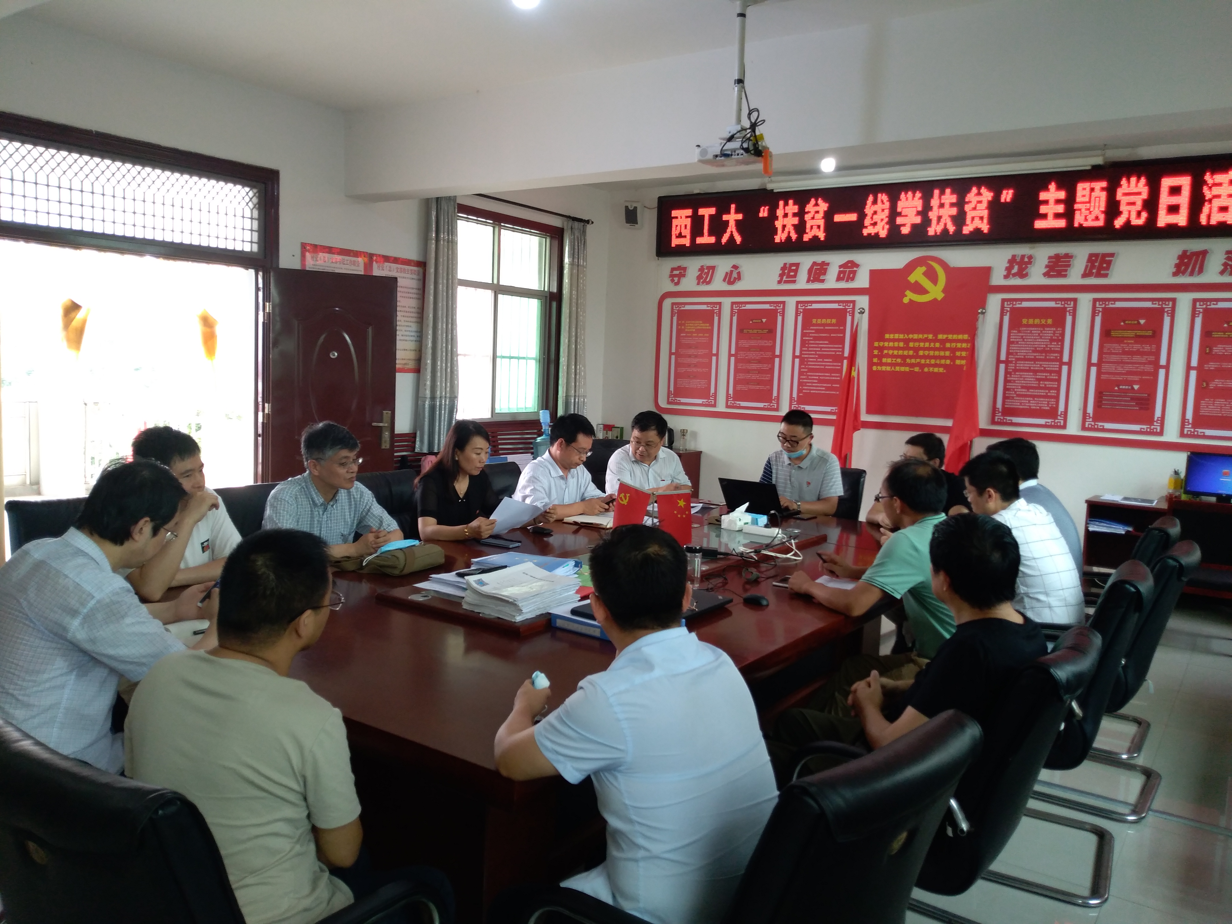 党委领导班子带领部分教师党支部书记、院办党员十余人赴鄠邑区余下街道灵山寺村开展主题为“扶贫一线学扶贫”的主题党日活动。西安市科技局派驻鄠邑区余下街道灵山寺村驻村工作队队长仇寅虎、西安市优秀驻村第一书记关盛元及相关工作人员参加会议。会议由物娱乐城