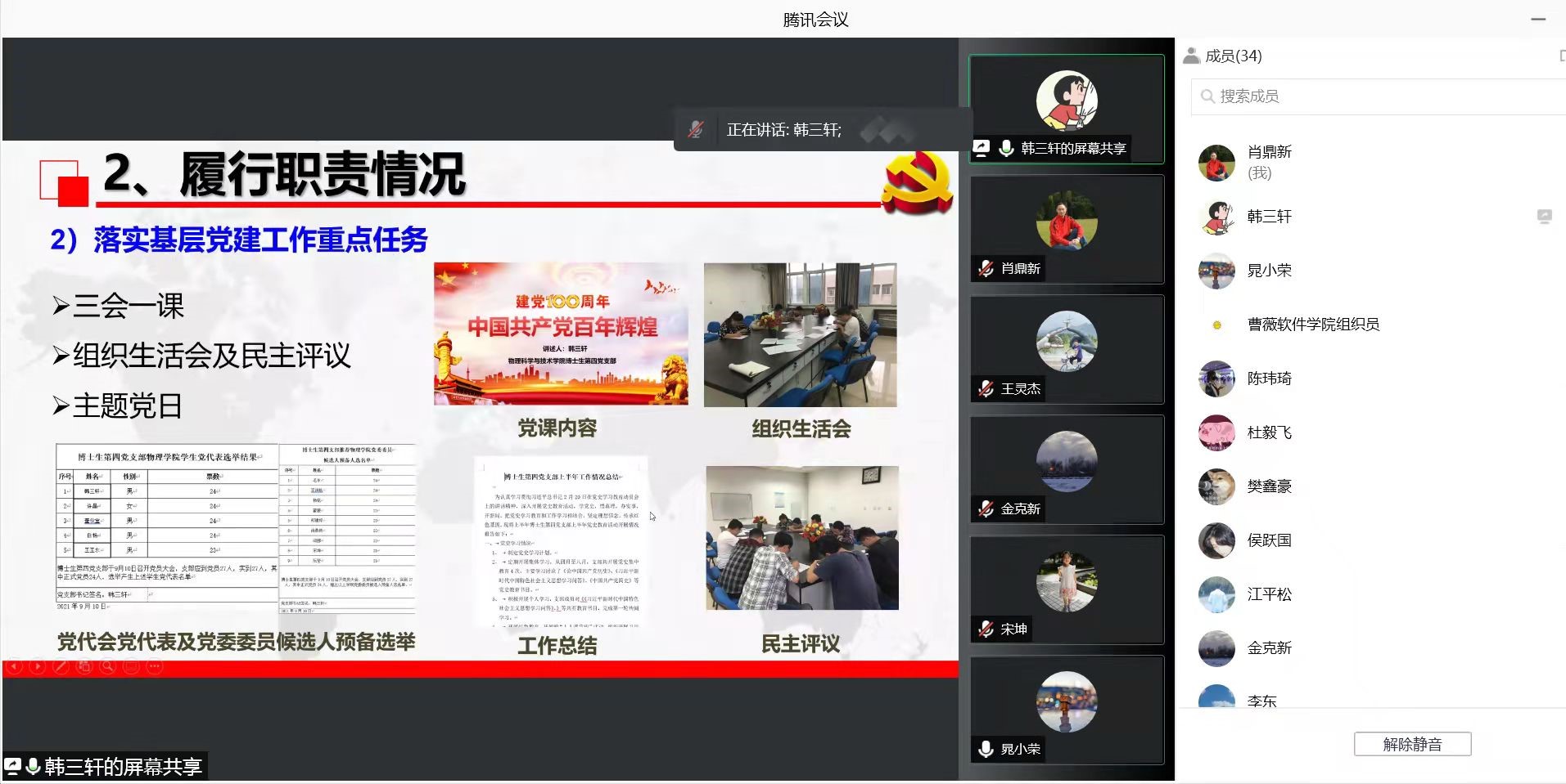 将有2个教工党支部书记和4个学生党支部书记进行现场述职,其他支部均为书面述职形式。现场述职的6位党支部书记围绕深化习近平新时代中国特色社会主义思想学习教育、落实基层党建工作重点任务、强化党支部政治功能、做好思想政治工作和意识形态工作、推进全面从严治党,加强纪律建设和廉洁教育、特色工作和下一年度打算等方面汇报了本年度支部书记抓党建情况。述职环节采用一述职一点评的形式进行,与会评委一一做了分享交流,同时还对书面述职报告进行了审阅评议。