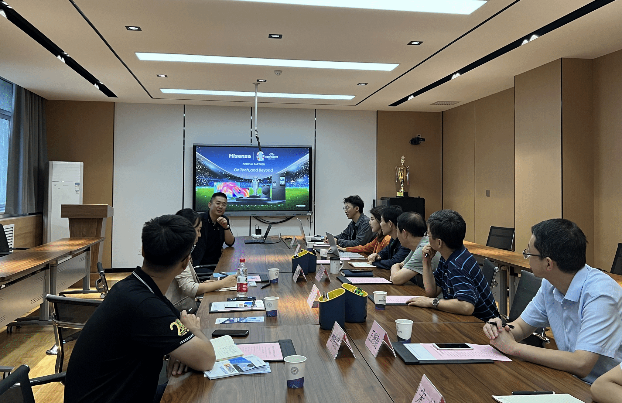 的基本情况及科研团队情况,并指出双方要围绕强化专业特色,提高就业能力继续深化合作。周志刚从发展历史、产业状况、集团分布及研发业务等方面详细介绍海信集团的基本情况,他希望未来双方能够在人才培养、科技创新、成果转化等领域开展更广泛、更深入的合作交流,同时通过校企合作吸纳更多的工大学子到集团实习就业。