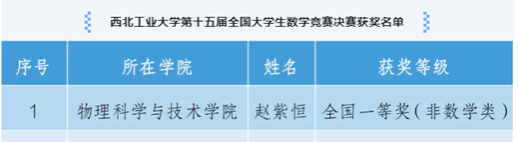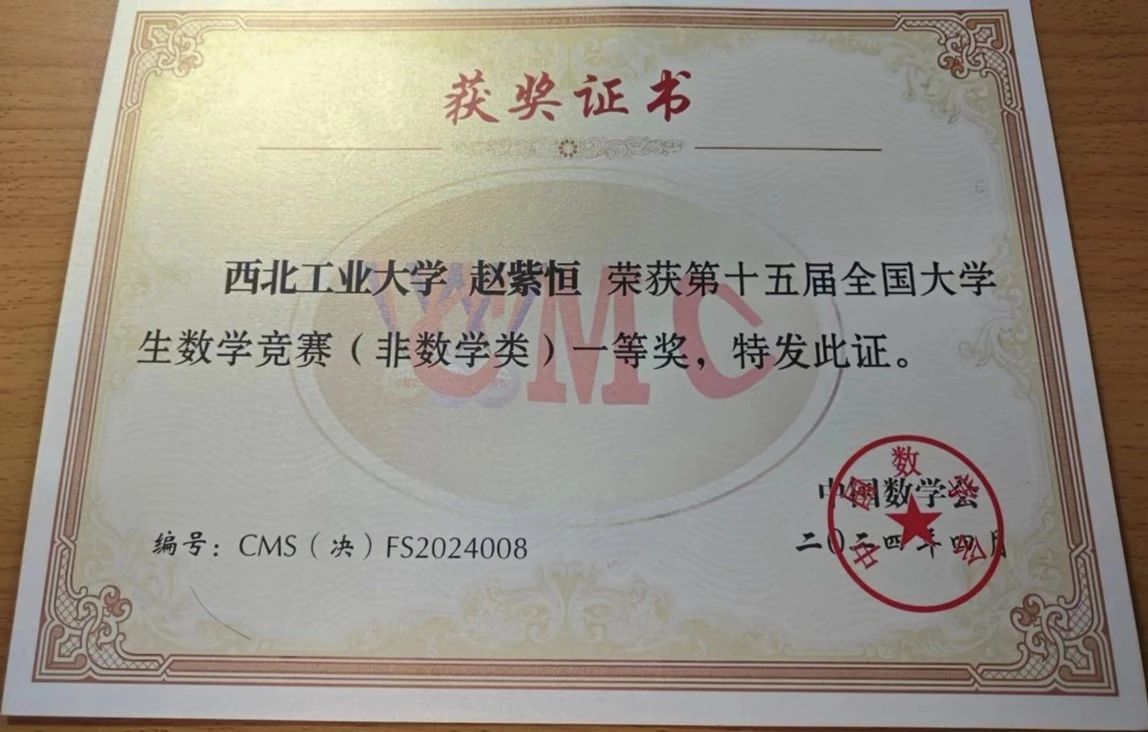 2023级本科生赵紫恒同学荣获全国一等奖(非数学类)(94.5分全国第八,陕西省第一)。