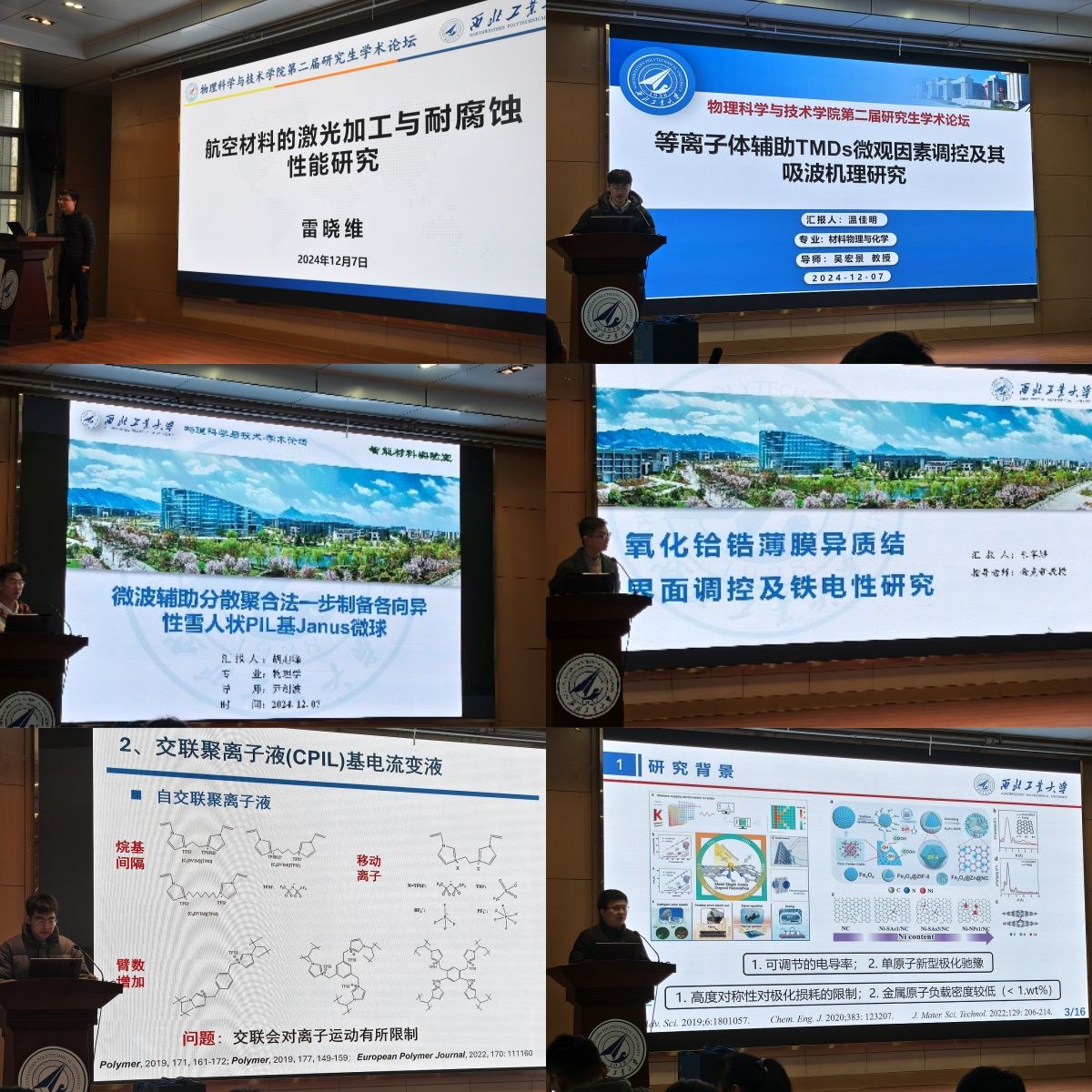 材料物理与化学分论坛邀请了雷晓维、肖娉和逄浩明三位副教授担任专家评委,其中雷晓维作了主题为“航空材料的激光加工与耐腐蚀性能研究”的报告。16名研究生和本科生进行了自己研究工作的精彩汇报和展示。评委老师针对汇报中存在的问题提出了中肯建议,并与同学们进行了深入交流和讨论。本分论坛最终评选出一等奖1名、二等奖2名、三等奖3名及优秀奖10名。