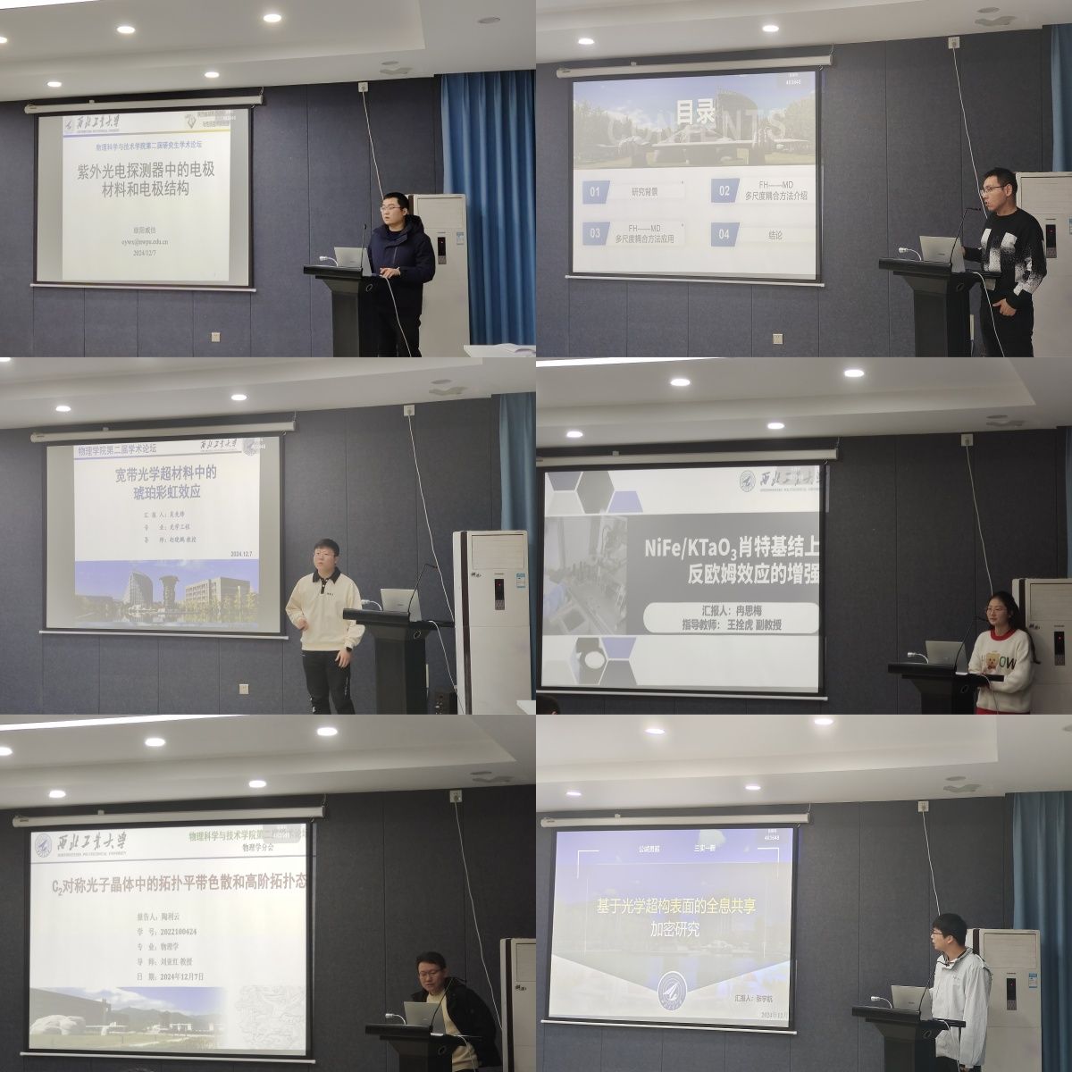 第二届研究生学术论坛。本次论坛共设上下午会场,上午举行了论坛大会,邀请青年教师作主题报告;下午分为材料物理与化学、物理学和光学工程三个学科分论坛,开展了各具特色的分论坛报告。
