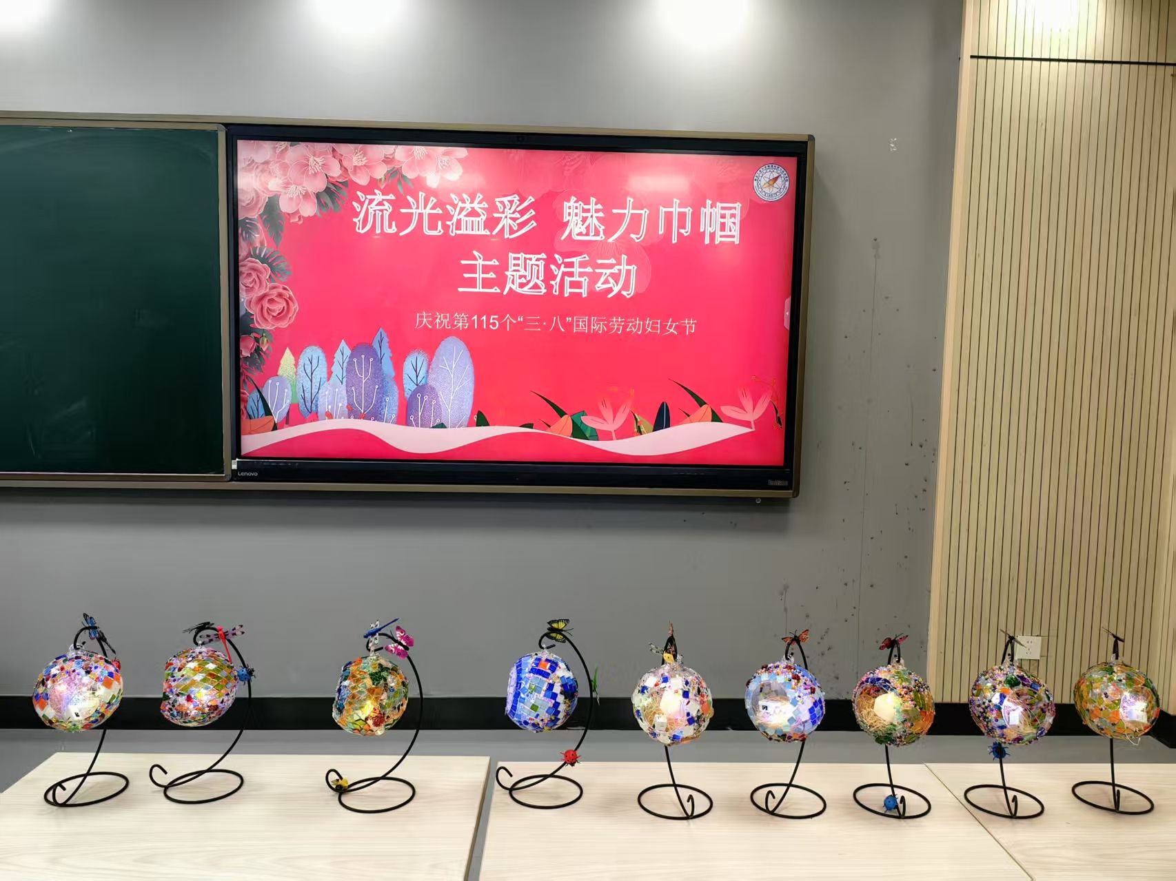在专业老师的指导下,女教职工们纷纷动手制作独具匠心的琉璃艺术吊灯。晶莹剔透的琉璃片在她们的巧手编织下焕发出斑斓的光彩,一件件精美的作品逐渐成型。这些作品不仅展现了理工科女性在严谨工作之余的独特艺术审美,更彰显了她们在手工创作中的细腻与巧思。通过手工制作这一富有创意的过程,女教职工们不仅收获了属于自己的琉璃吊灯,更在轻松愉快的氛围中进一步增强了团队的凝聚力和向心力。