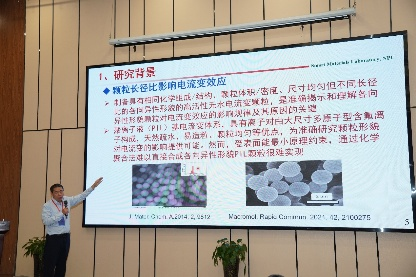 尹剑波教授作题为“聚离子液椭球悬浮液的电流变效应”的大会报告,张劲军教授和龚兴龙教授为大会报告人颁发证书并合影。