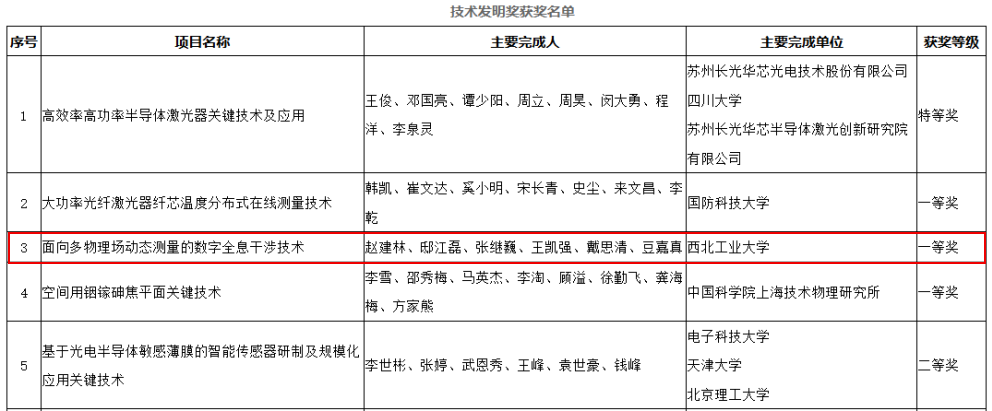 赵建林教授团队完成的项目“面向多物理场动态测量的数字全息干涉技术”荣获技术发明一等奖,主要完成人包括赵建林、邸江磊、张继巍、王凯强、戴思清、豆嘉真。这是娱乐城