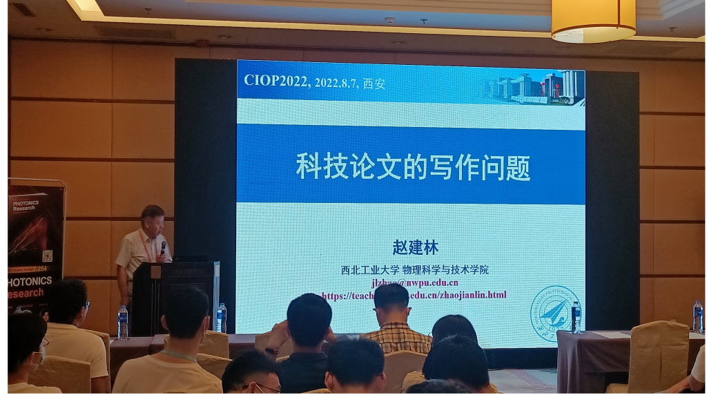 赵建林教授主讲“与主编面对面—科技论文的写作问题”公益课堂,进行了一个半小时的线下讲座和线上同步直播,将科技论文写作的特点及基本要求、论文撰写准备与要点等,从现场传递至直播间2000余位光学从业人员的屏幕前。
