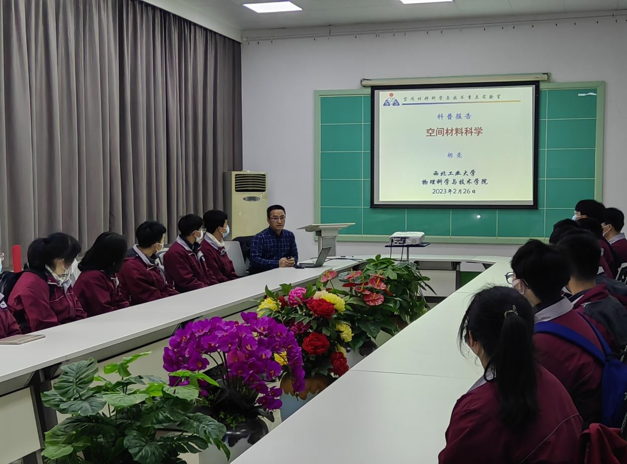 随后,胡亮老师为研学师生作了题为《空间材料科学讲堂:地面画龙,空间点睛》的科普报告。在互动环节,胡亮老师结合实际生活场景设置问题,同学们畅所欲言、各抒己见。