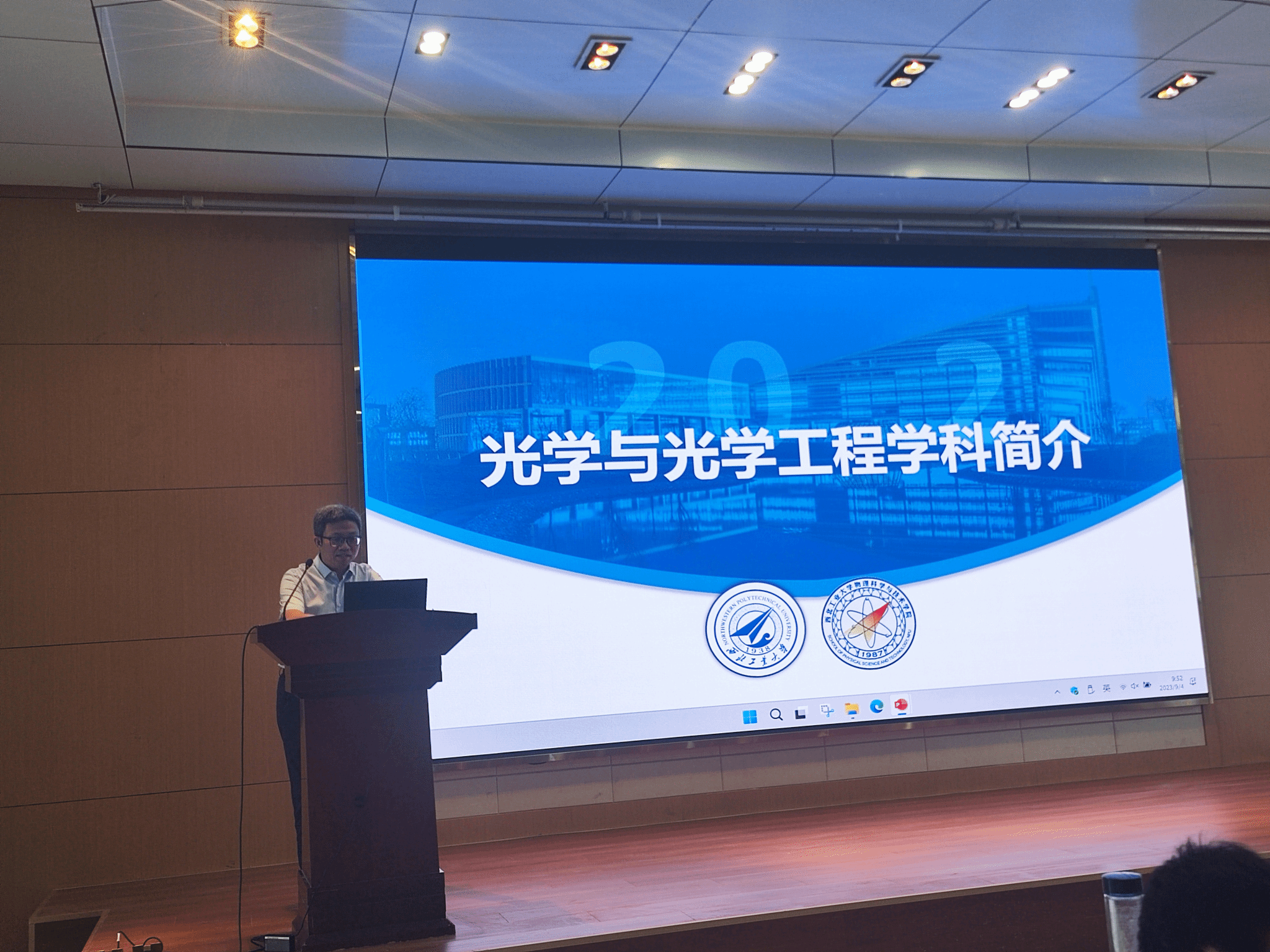 光电信息科学与工程系主任及光学工程学科负责人杨德兴教授为同学们介绍了学科建设发展情况,勉励同学们“会当凌绝顶,一览众山小”,希望广大同学在学习和科研中,不畏艰难、勇于攀登,走向人生的顶峰。随后,学科优秀青年导师姜碧强教授、温丹丹教授、毛珊副教授和谢鑫副教授分别讲述了各自的科学研究和学术成长经历,分享了在科研过程中遇到的困难和克服困难的经验,勉励同学们在科研上敢于应对挑战,以认真严谨的态度和勤奋坚毅的品质攻坚克难,并叮嘱学生将身心健康放在第一位,注意科研和生活的平衡。