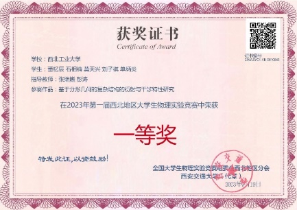 学生董钇辰队长和曹恩馨队长分别带领的2支队伍成功进入决赛,并在决赛中表现优异,分别获得了国家一等奖和二等奖。获奖作品分别为“命题类-基于分形几何的复杂结构的衍射与干涉特性研究”和“讲课类-迈克尔逊干涉仪测空气折射率”。在本次国赛中,娱乐城