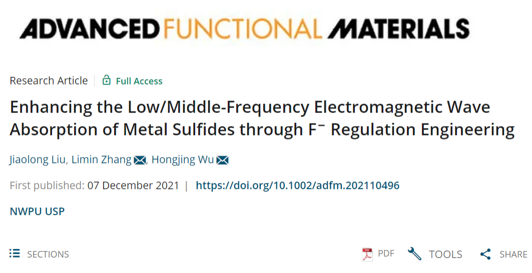青年教师吴宏景副教授在电磁波吸收领域取得重要进展。相关研究成果以“Enhancing the low/middle-frequency electromagnetic wave absorption of metal sulfides throughF−regulation engineering”为题在线发表于国际知名期刊《Advanced Functional Materials》。论文第一作者为该院博士研究生刘骄龙,通讯作者为张利民副教授和吴宏景副教授。论文网址:。