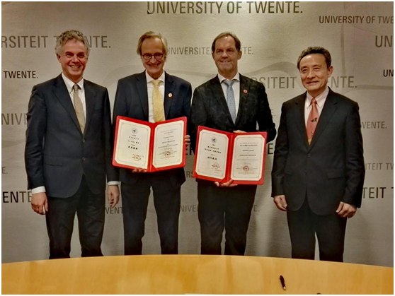 2017年12月7-8日,校长汪劲松教授带队访问了荷兰特文特大学,双方校长就共建“纳米流体与界面国际联合实验室” 签署了合作协议,举行了该校两位著名教授的聘任仪式,参观了该校共享实验平台,并举办了人才招聘宣讲会。